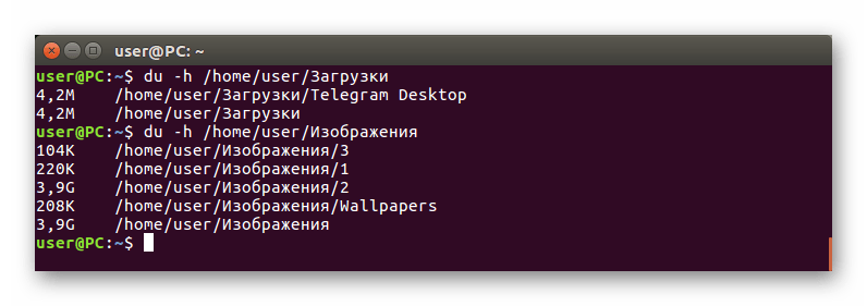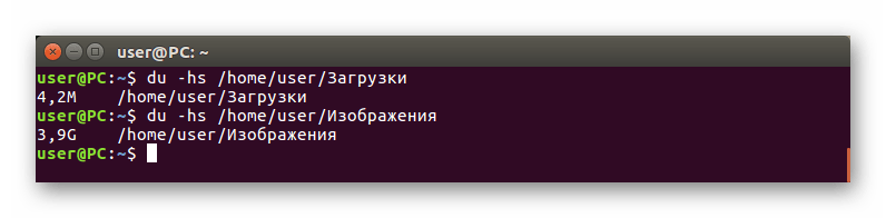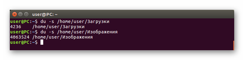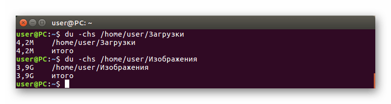 Для полного отчета об объеме, занимаемом определенной папкой, укажите вместе с командой du опцию -s, а после — имя интересующей вас папки.