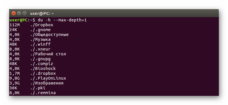 Чтобы получить подробнейшую информацию о размере папок в Linux, лучше воспользоваться командой du в «Терминале». Хотя данный способ может отпугнуть неопытного пользователя, который только перешел на Linux, он отлично подойдет для выяснения нужной информации.